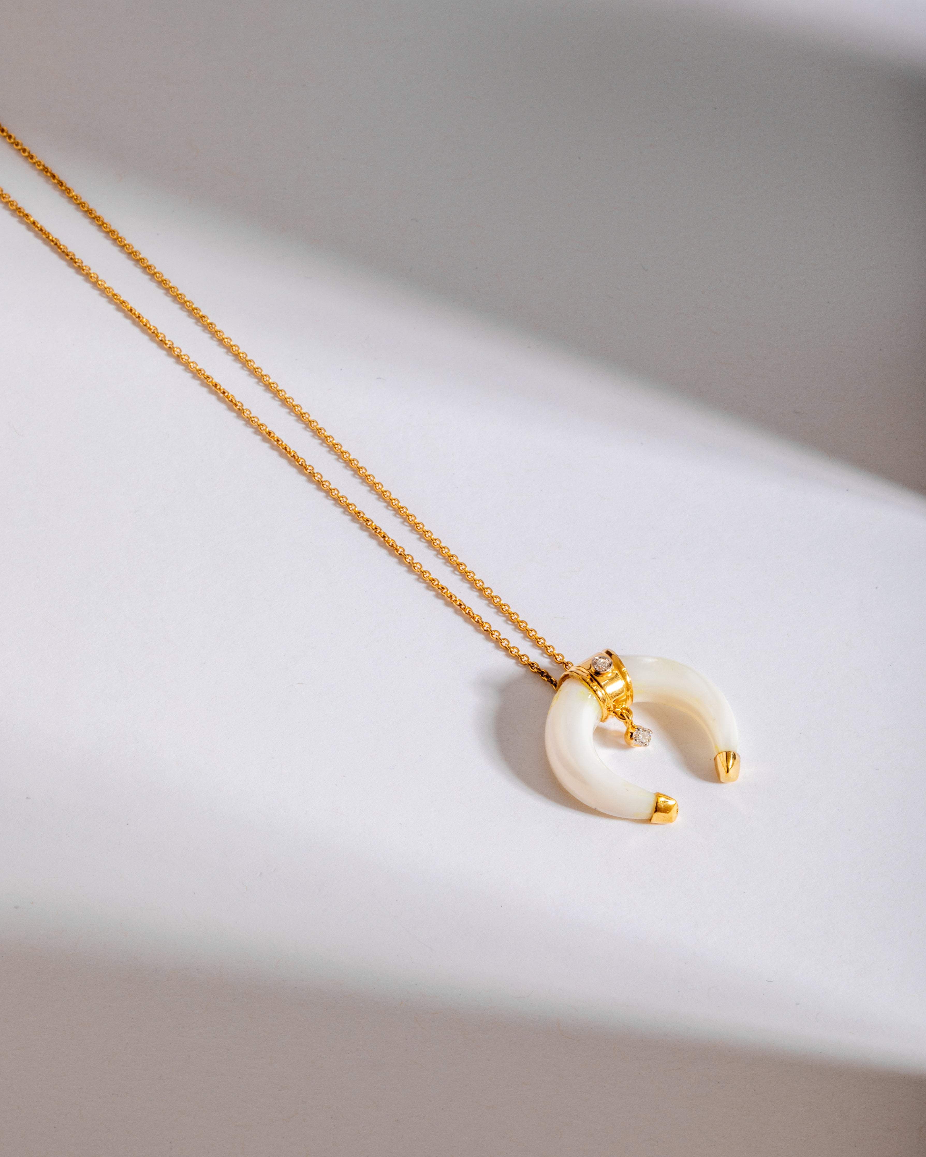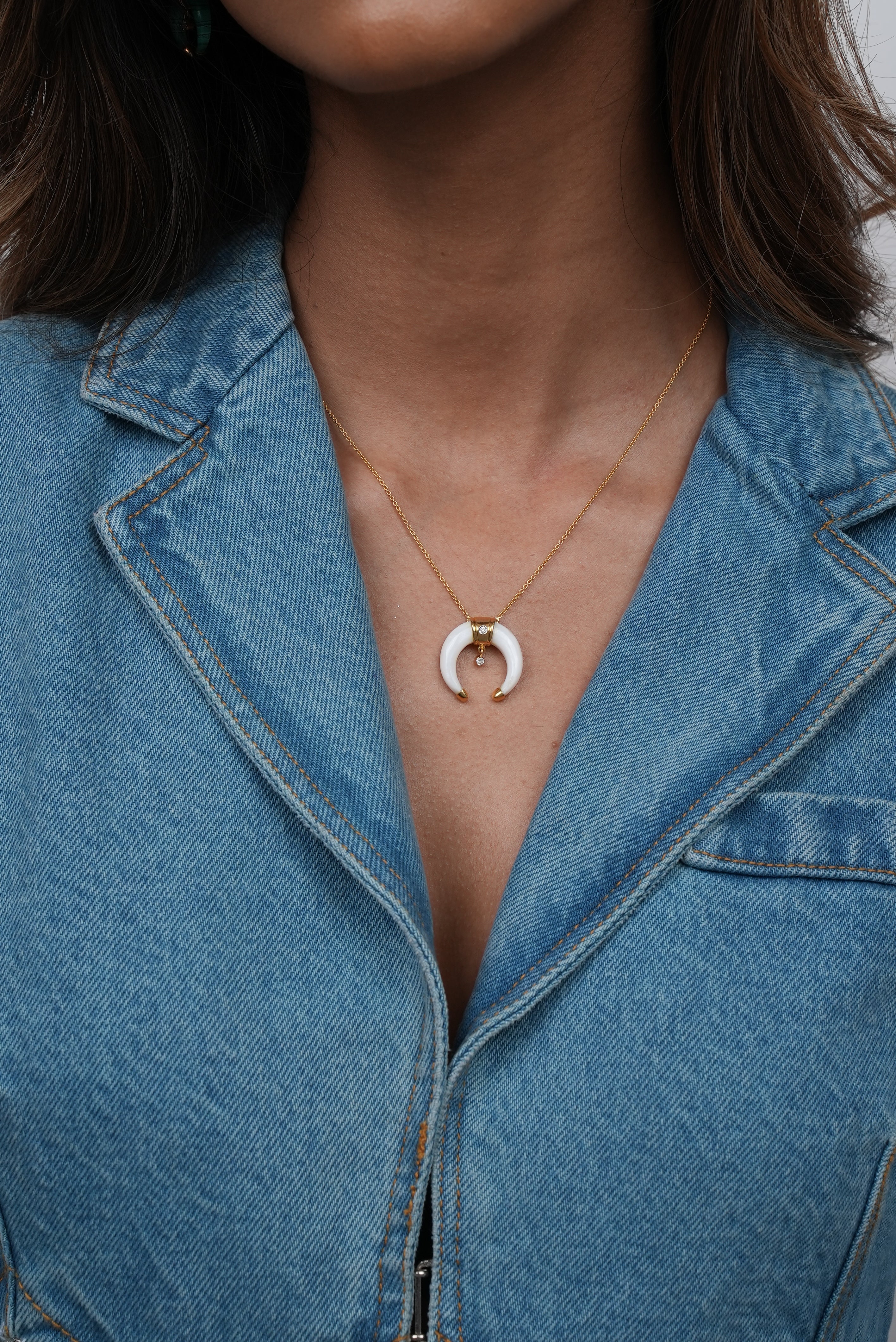 Our crescent Moon Shaped Necklace is a timeless piece that effortlessly captures the beauty of the night sky. This enchanting necklace is designed to add a touch of celestial elegance to your jewelry collection, making it the perfect statement accessory on your neck for any occasion.