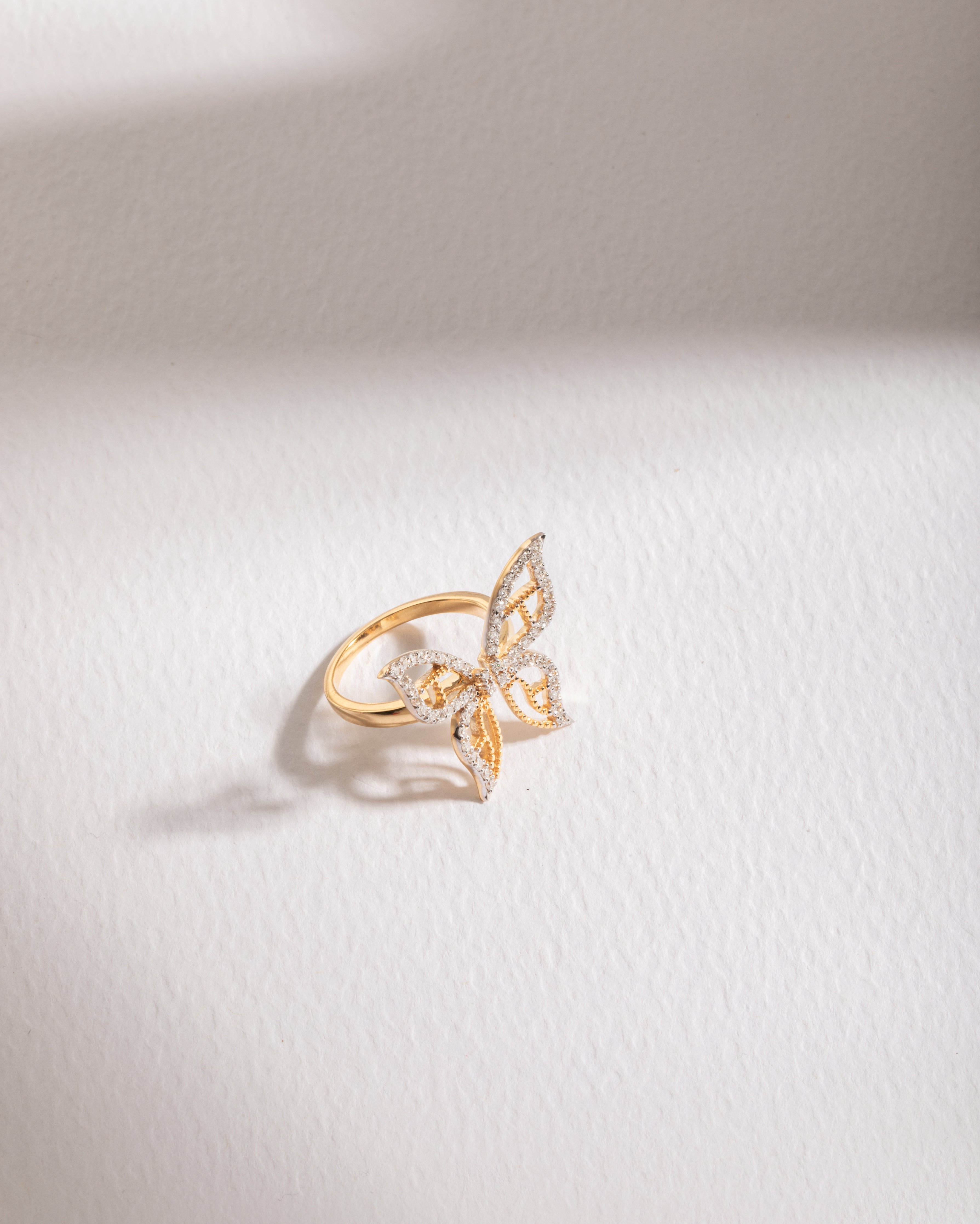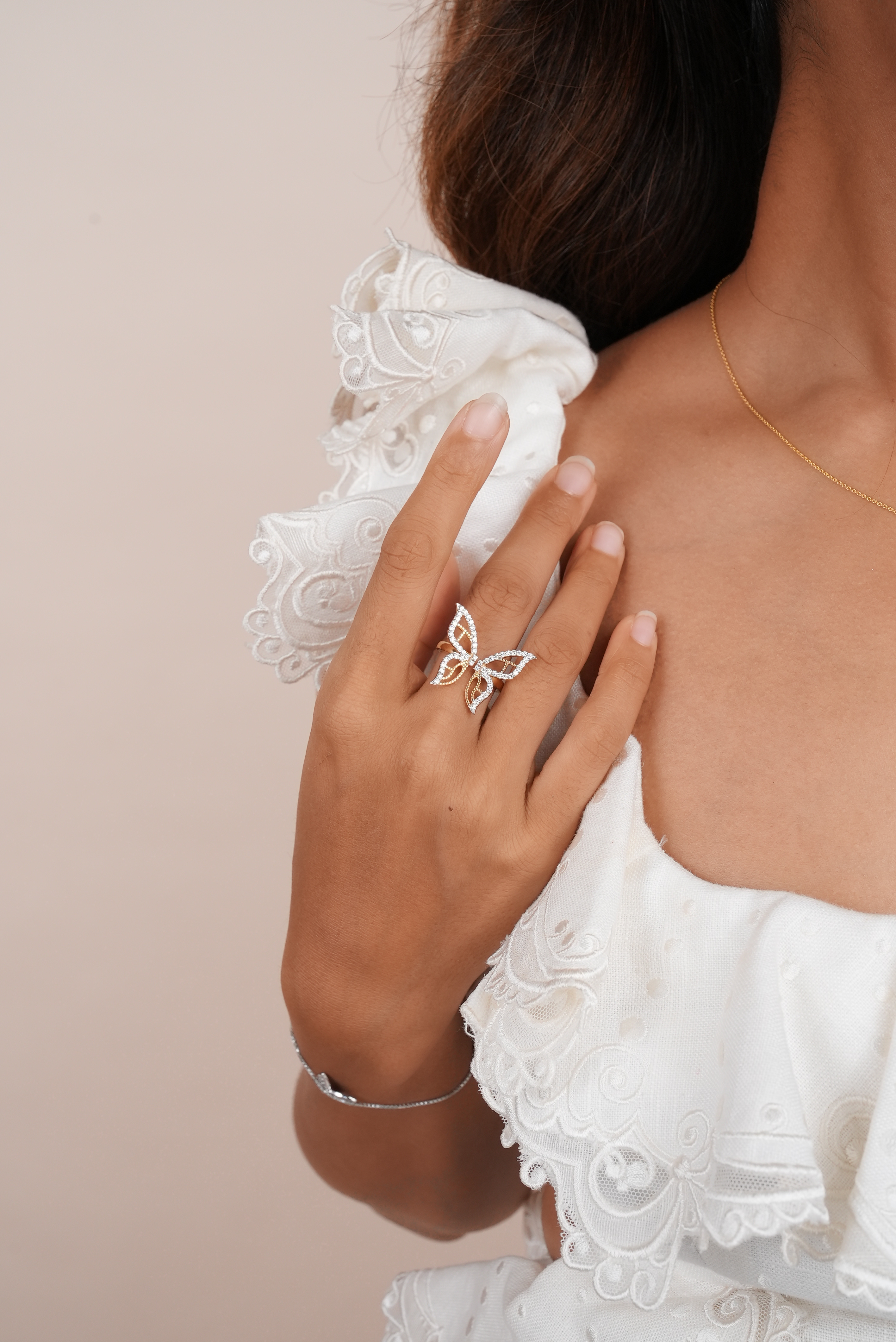 Our beautiful Papillon bracelet encrusted in diamonds is truly a natural beauty. Crafted with utmost precision, this bracelet is shaped and textured to mirror the intricate patterns found in the silhouette of a butterfly.