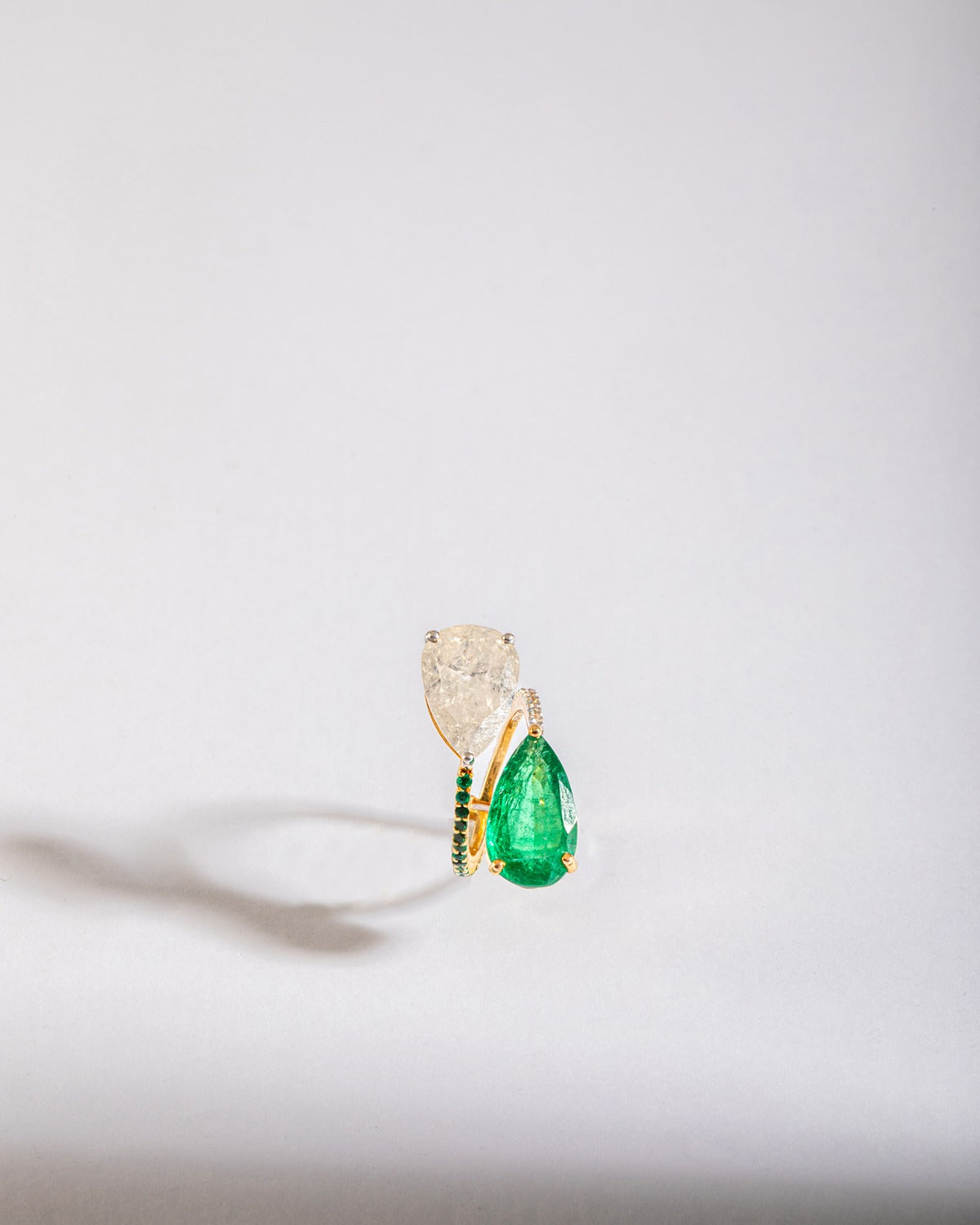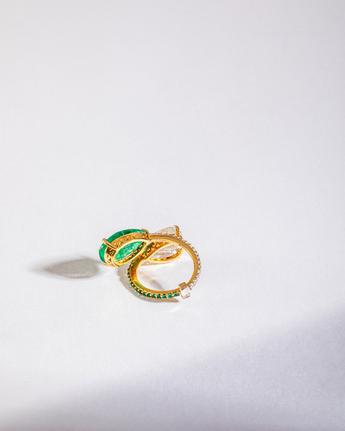 Toi Et Moi Emerald And Frosted Diamond Ring