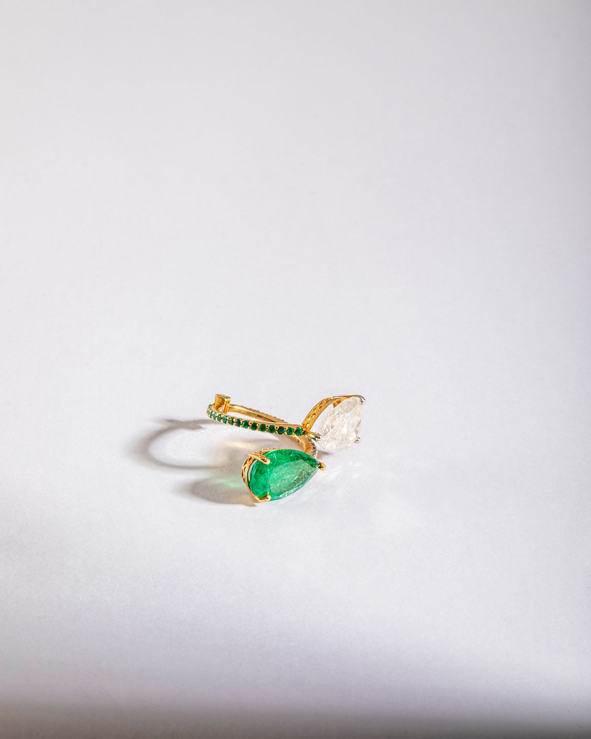 Boldly different, beautifully united—emerald and frosted diamond in modern harmony.